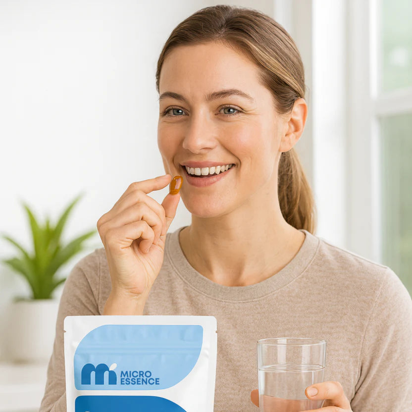 2 softgels daily with food; breakfast or lunch works best. Your body absorbs omega-3s better when paired with a meal containing healthy fats.
